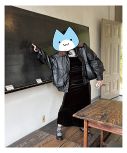 建物内に机と椅子があったので、試しに1度座ってみると机の下に足がしまえず、「昔はこんなに小さかったのか・・」と自身の成長を感じることができます!
